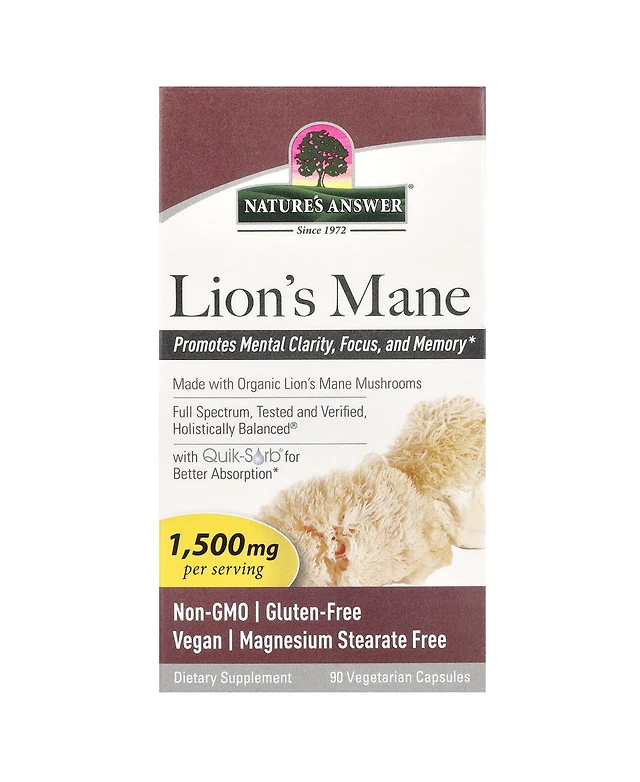 Nature's Answer Lion's Mane - 90 Vegetarian Capsules (500 mg per Capsule)