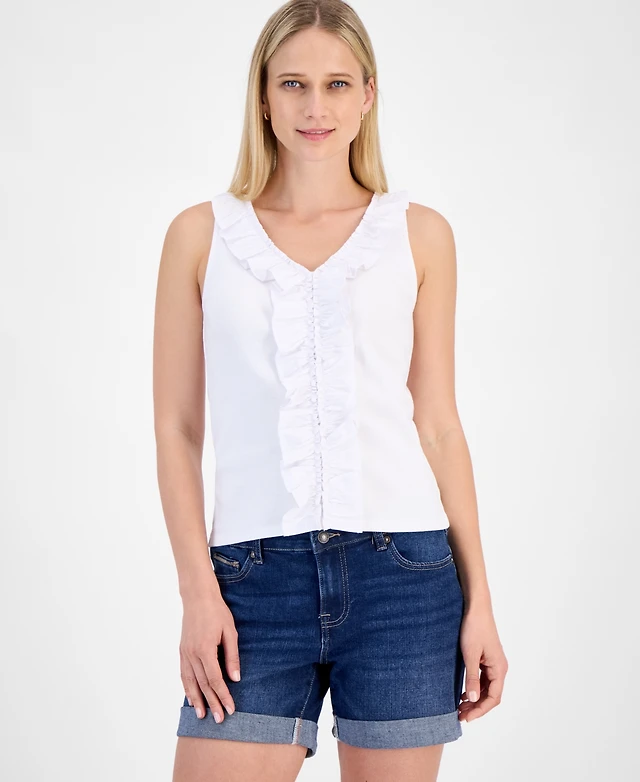 Nautica Jeans Women's Cotton Ruffled V-Neck Tank Top