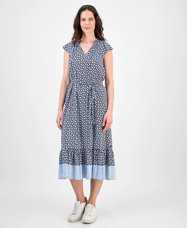 Nautica Jeans Women's Floral-Print Flutter-Sleeve Midi Dress