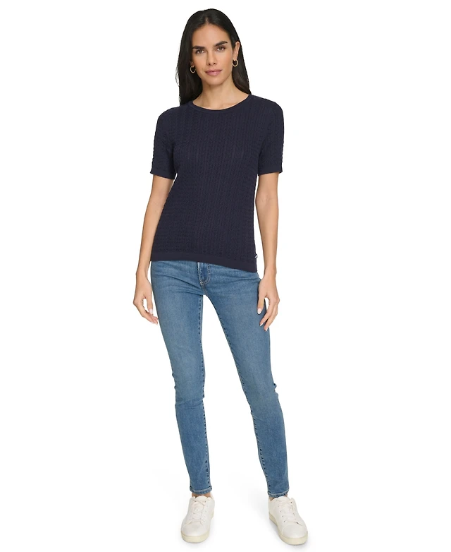 Nautica Jeans Women's Short Sleeves Rope Cable Sweater