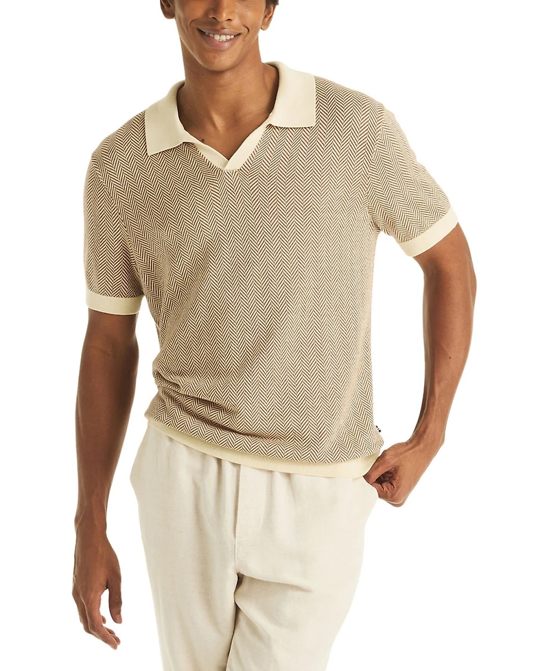 Textured style meets classic comfort in this Nautica polo, featuring a stitched herringbone pattern and ribbed split neck. Short sleeves and a classic fit deliver versatile, everyday wear.