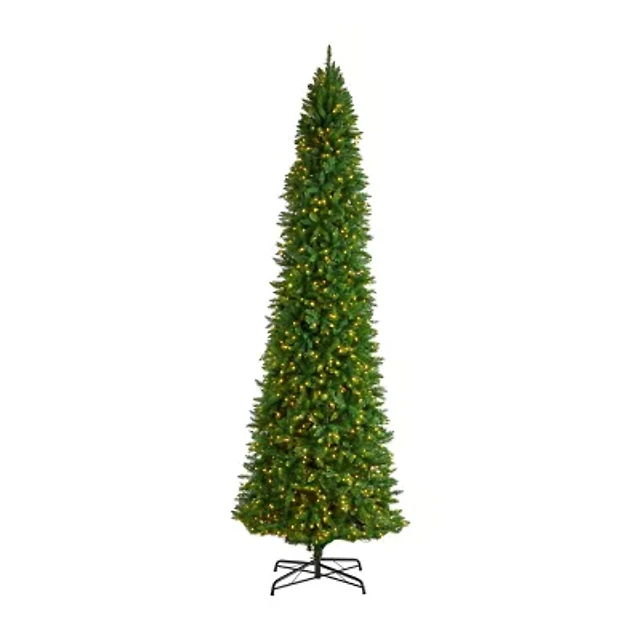 Nearly Natural Flocked Pencil Faux 12 Foot Pre-Lit Christmas Tree
