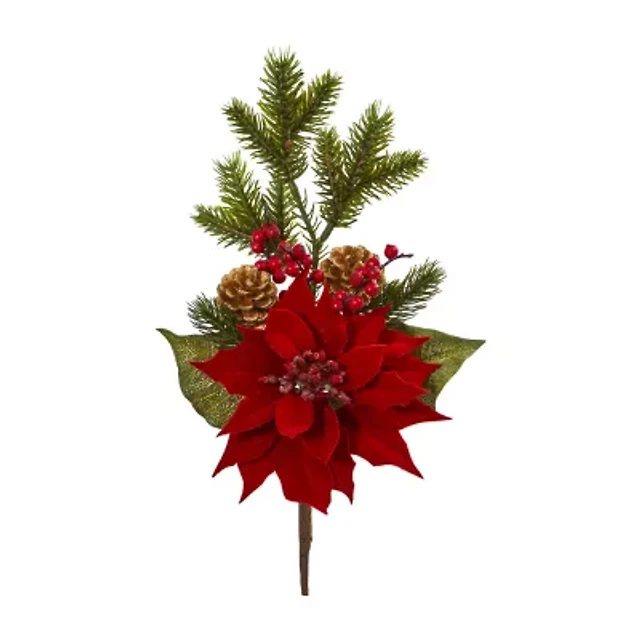 Nearly Natural 17in. Faux Poinsettia Pine Stem Set Red 6-pc. Christmas Tabletop Decor
