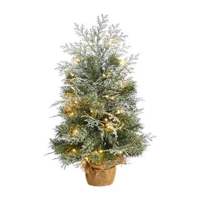 Nearly Natural 2 Foot Winter Frosted Fir In Burlap Base With 35 Led Lights Pre-Lit Christmas Tree