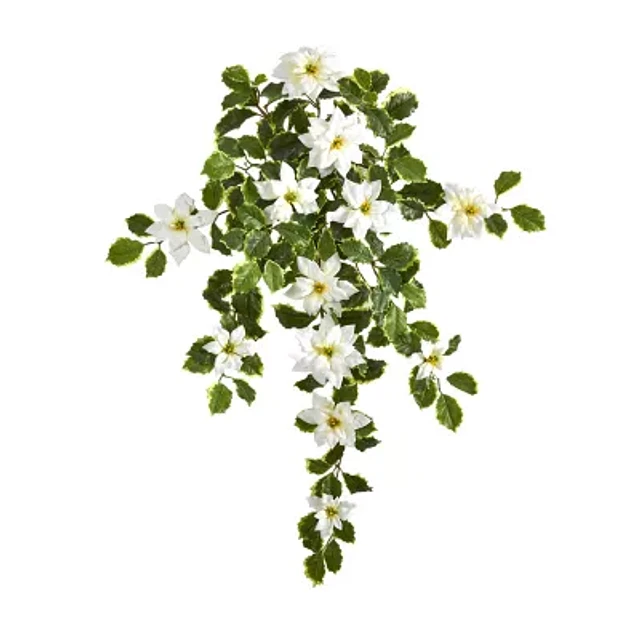 Nearly Natural 30in. Faux Poinsettia Holly Plant White Christmas Tabletop Decor