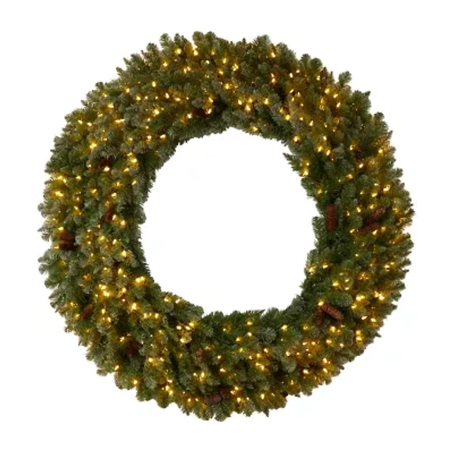 Nearly Natural Giant Flocked Faux Pre-Lit Wreath