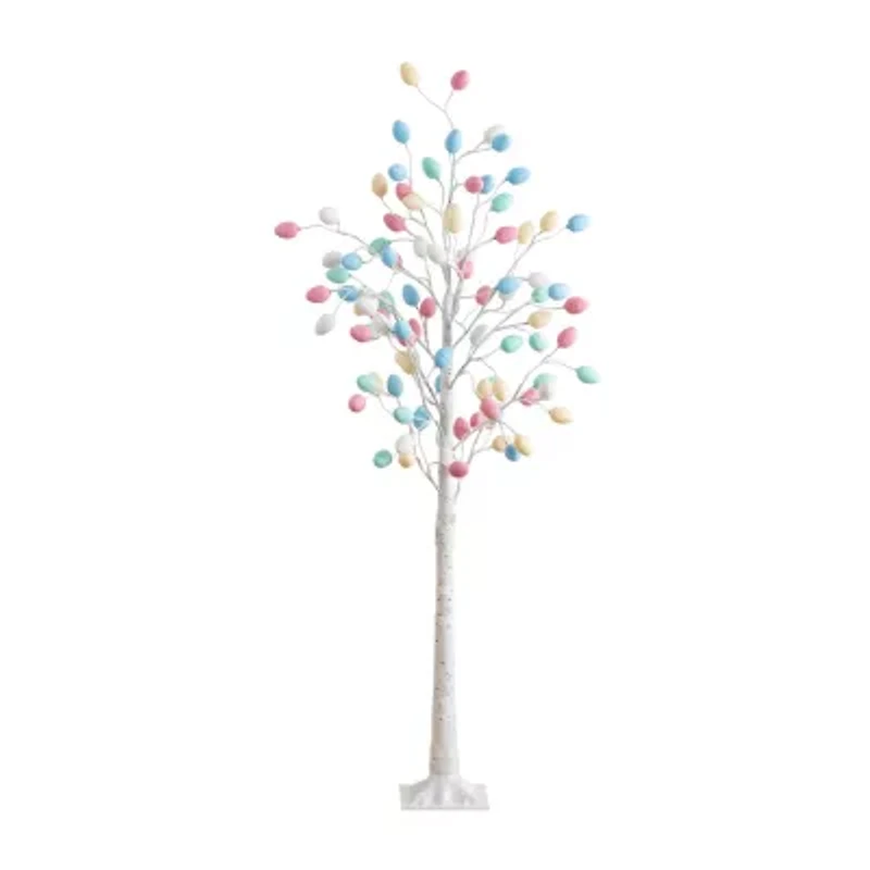 Easter decorating is made easy with this 6-ft pre-lit Easter artificial twig tree with egg-shaped ornaments and LED lights. Inspired by woodsy, birch trees, the egg crackle finish in soft pastel colors add a playful, whimsical touch. Style it in a kid's room, living room, or entryway and let it bring a little happiness to you every day. Great for Easter brunch and beyond, shape the branches for a custom look.