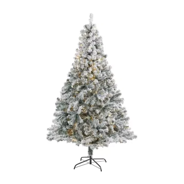Nearly Natural 8 Foot Oregon Flocked Pine With 1172 Bendable Branches And 500 Clear Lights Pre-Lit Christmas Tree