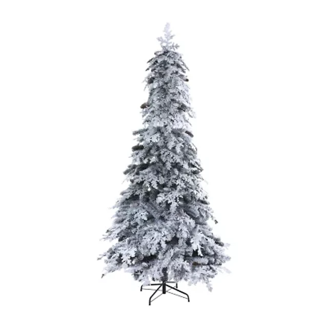 Nearly Natural Frosted 8 Foot Pre-Lit Flocked Pine Christmas Tree