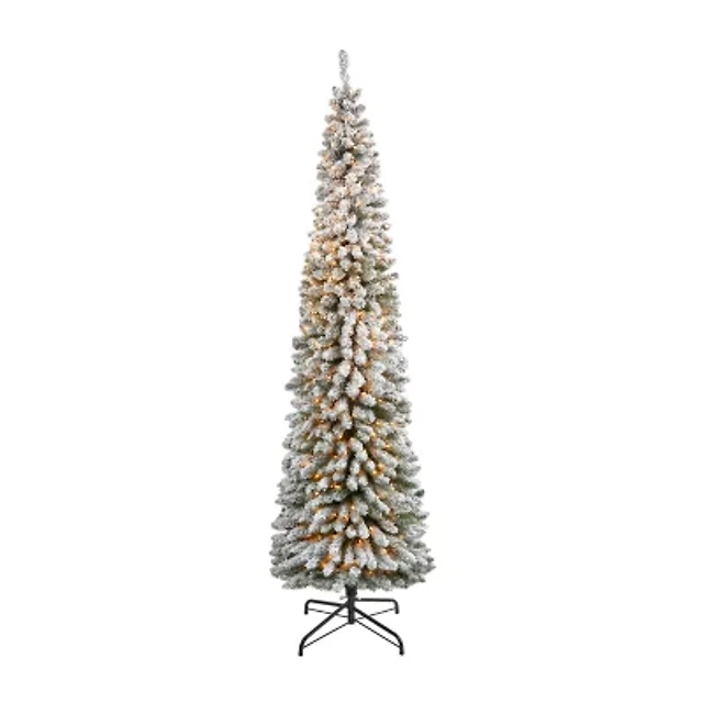 Nearly Natural 6 Foot Pencil Flocked Pine With 438 Bendable Branches And 300 Clear Lights Pre-Lit Christmas Tree