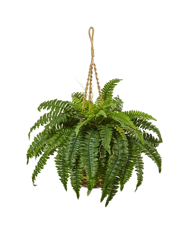Nearly Natural Boston Fern Artificial Plant Hanging Basket