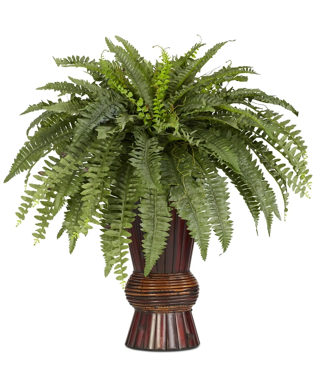 Nearly Natural Boston Fern Artificial Plant in Bamboo Vase