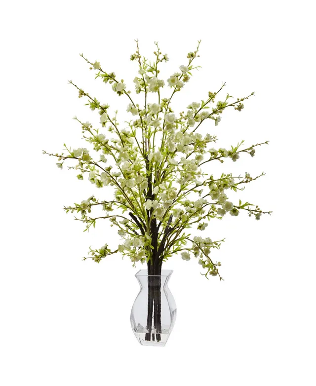 Nearly Natural Cherry Blossom Artificial Arrangement in Glass Vase