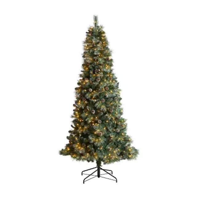 Nearly Natural Frosted 8 Foot Pre-Lit Flocked Pine Christmas Tree
