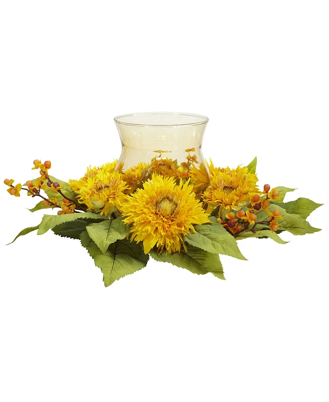Nearly Natural Golden Sunflower Candelabrum Silk Flower Arrangement