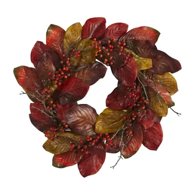 Nearly Natural Harvest Magnolia Artificial Wreath