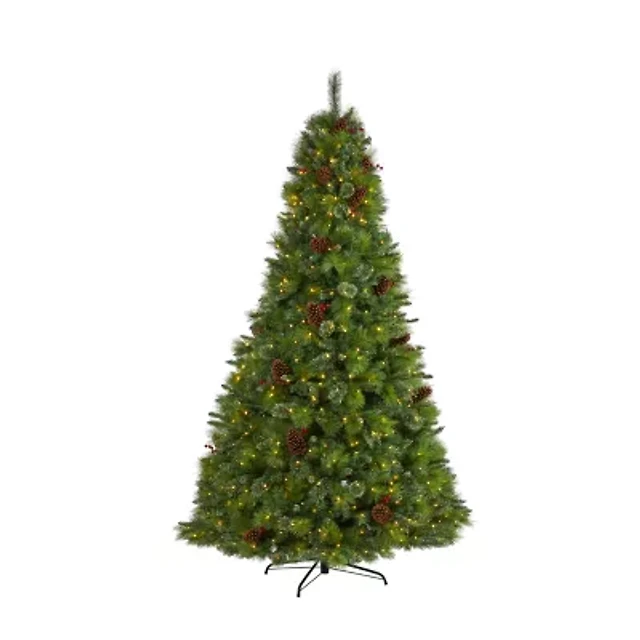 Nearly Natural 8 Foot Flocked Montana Down Swept Spruce With Pinecones And 500 Led Lights Pre-Lit Artificial Christmas Tree