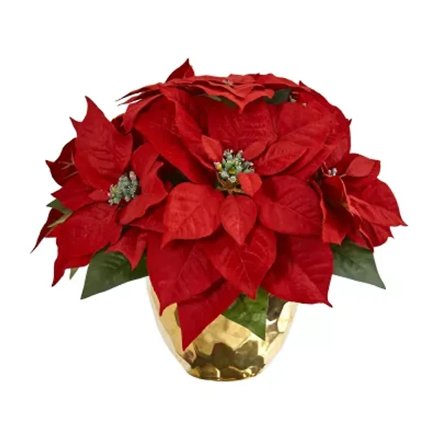 Nearly Natural Poinsettia Artificial Arrangement In Vase Christmas Tabletop Decor