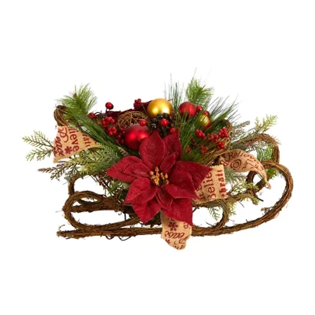 Nearly Natural Poinsettia Sleigh Tabletop Decor