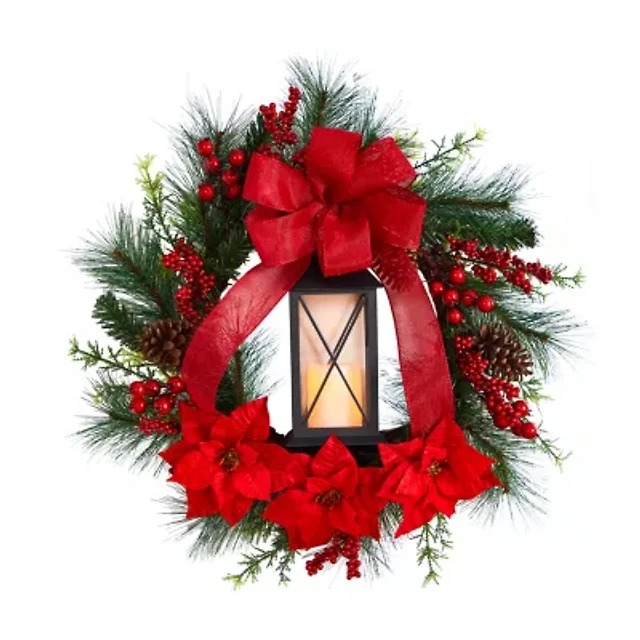 Nearly Natural 5ft. Flocked Faux Pre-Lit Wreath