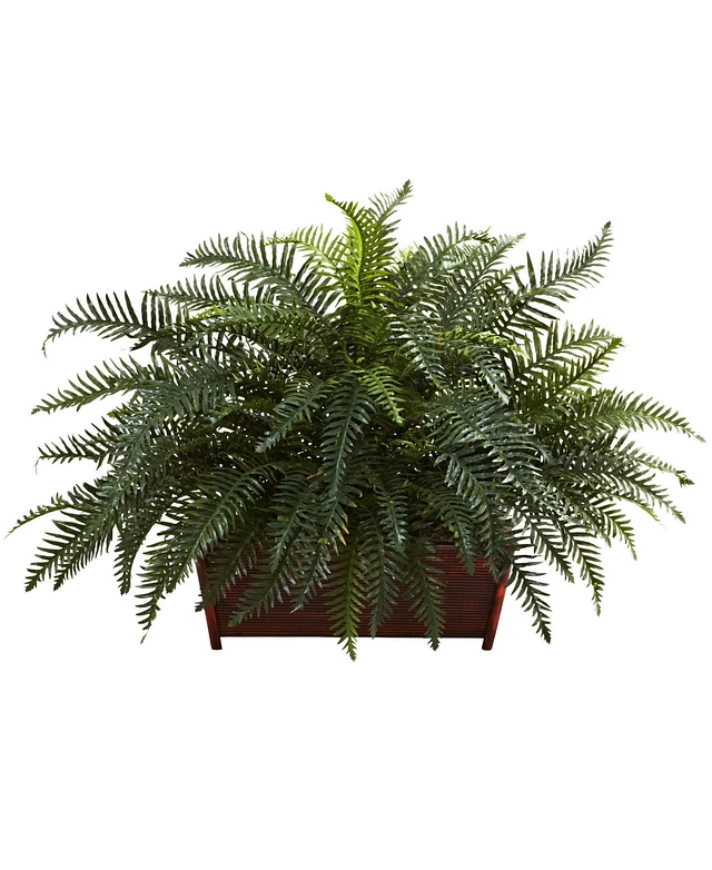 Nearly Natural Boston Fern w/ Wood Vase Silk Plant