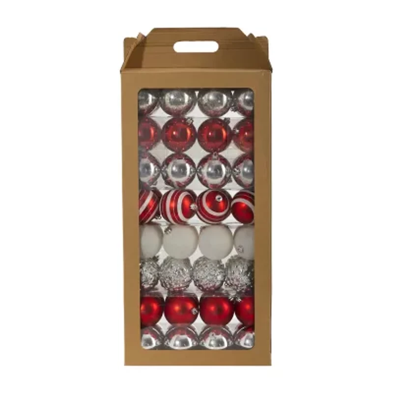 Get into the holly jolly spirit this holiday season with an easy, go-to set of shatterproof Christmas tree ornaments. Perfect for accenting and filling in bare spaces in Christmas trees, this set of 64 (80mm) holiday-inspired ornaments comes in bright seasonal hues and reflects a glass-like quality - without the fear of damage should they fall or drop. Arriving in a reusable box for continual seasonal use and storage, they're perfect for mixing and matching with other similar colors and themes.