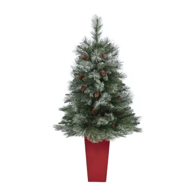 Nearly Natural Frosted Swiss Faux 4 Foot Pre-Lit Pine Christmas Tree