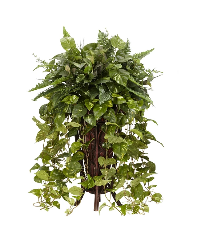 Nearly Natural Vining Mixed Greens w/ Decorative Stand Silk Plant
