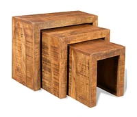 Nesting Table Set 3 Pieces Solid Mango Wood