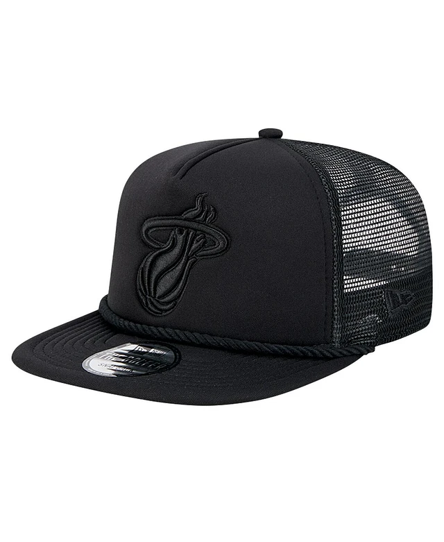 New Era Men's Black Miami Heat Tone Foam Meshback Golfer Snapback Hat
