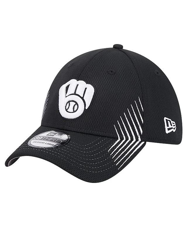 New Era Men's Black Milwaukee Brewers Active Dash Mark 39THIRTY Flex Hat