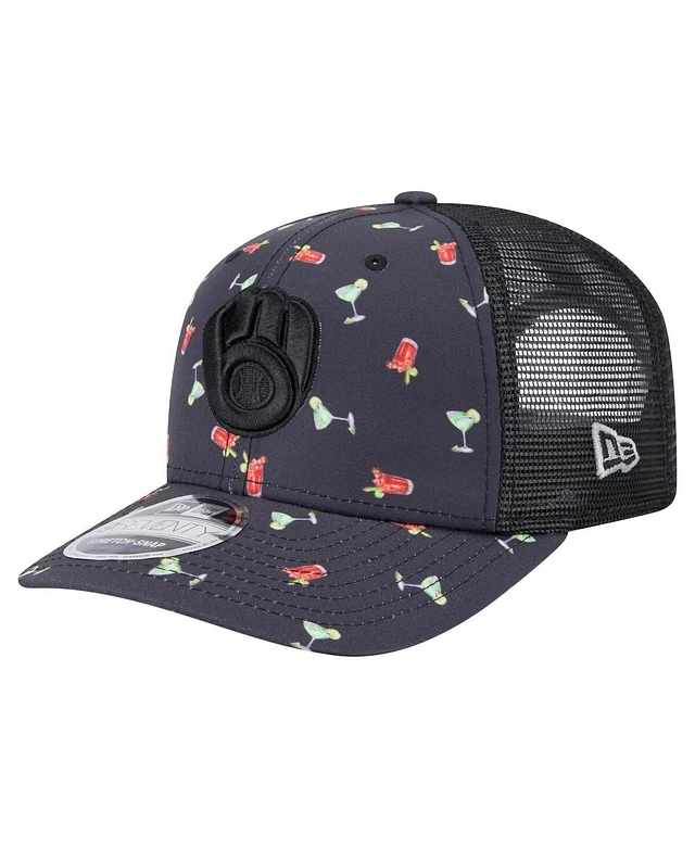 New Era Men's Black Milwaukee Brewers Adventure Drinks Pattern 9SEVENTY Stretch-Snap Hat