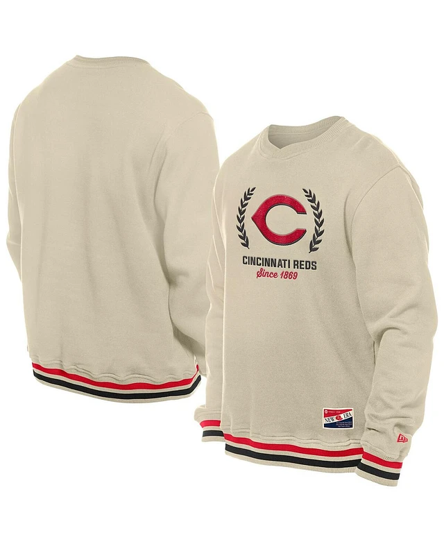 New Era Men's Cream Cincinnati Reds Throwback Pullover Sweatshirt