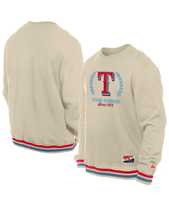 New Era Men's Cream Texas Rangers Throwback Pullover Sweatshirt