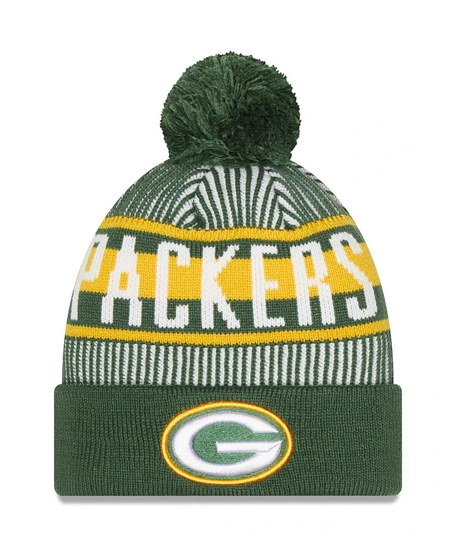 New Era Men's Green Green Bay Packers Striped Cuffed Knit Hat with Pom