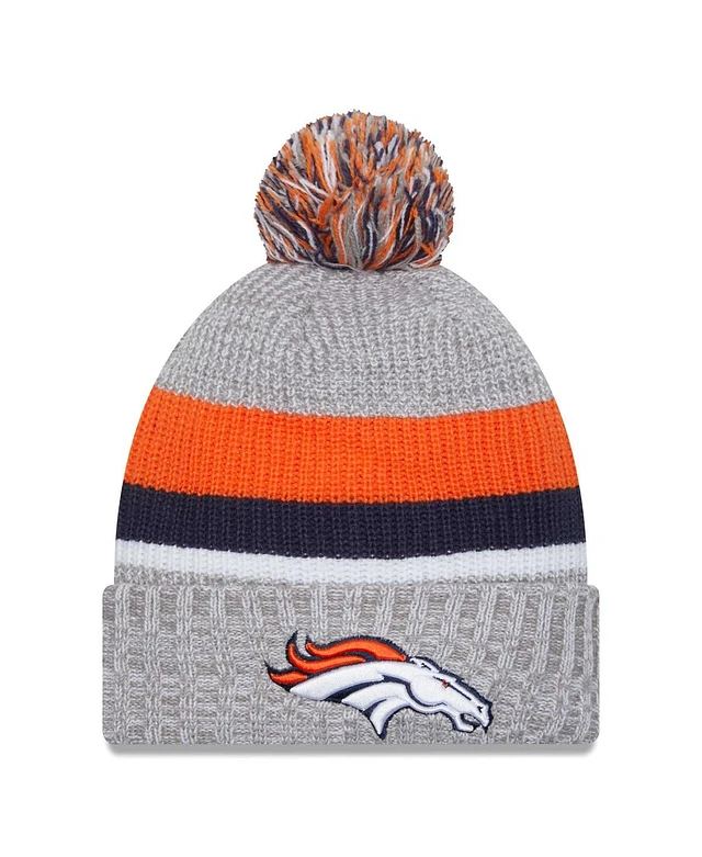 New Era Men's Heather Gray Denver Broncos Cuffed with Pom Knit Hat