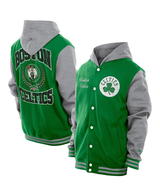 New Era Men's Kelly Green Boston Celtics Throwback Prep Chenille Full-Snap Hooded Varsity Jacket