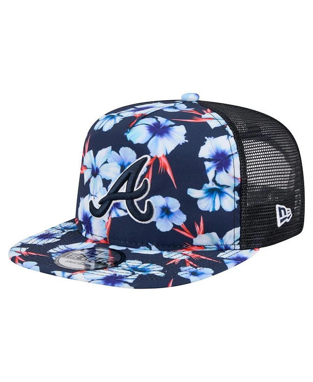 New Era Men's Navy Atlanta Braves Adventure Pattern Golfer Trucker Snapback Hat