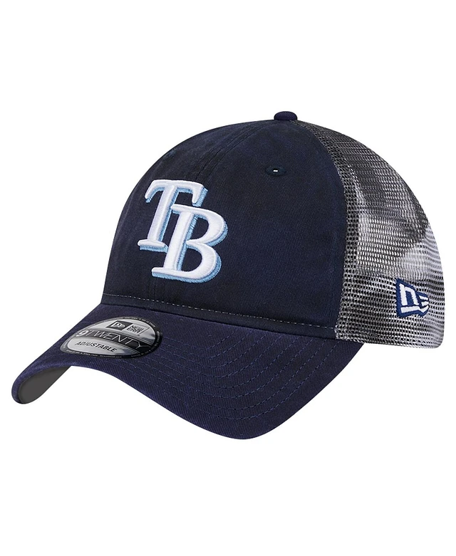 New Era Men's Navy Tampa Bay Rays Distressed 9FORTY A-Frame Adjustable Trucker Hat
