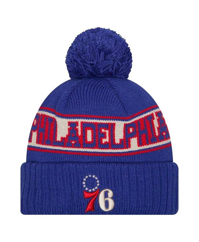 New Era Men's Royal Philadelphia 76ers Throwback Retro Cuffed with Pom Knit Hat