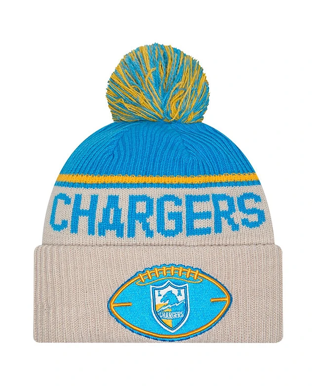 New Era Men's Stone Los Angeles Chargers Nfl Sideline Historic Cuffed with Pom Knit Hat