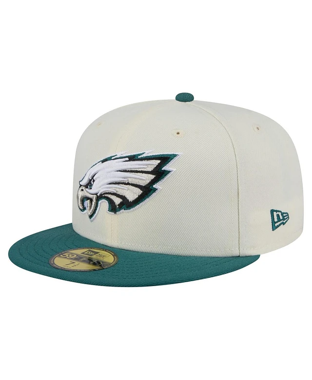 New Era Men's White/Midnight Green Philadelphia Eagles Main 59FIFTY Fitted Hat