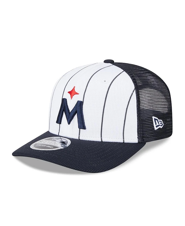 New Era Men's White/Navy Minnesota Twins 2025 Batting Practice 9SEVENTY Stretch-Snap Trucker Hat