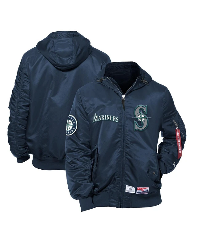 New Era Men's x Alpha Industries Navy Seattle Mariners Current Day Full-Zip Hooded Nylon Bomber Jacket