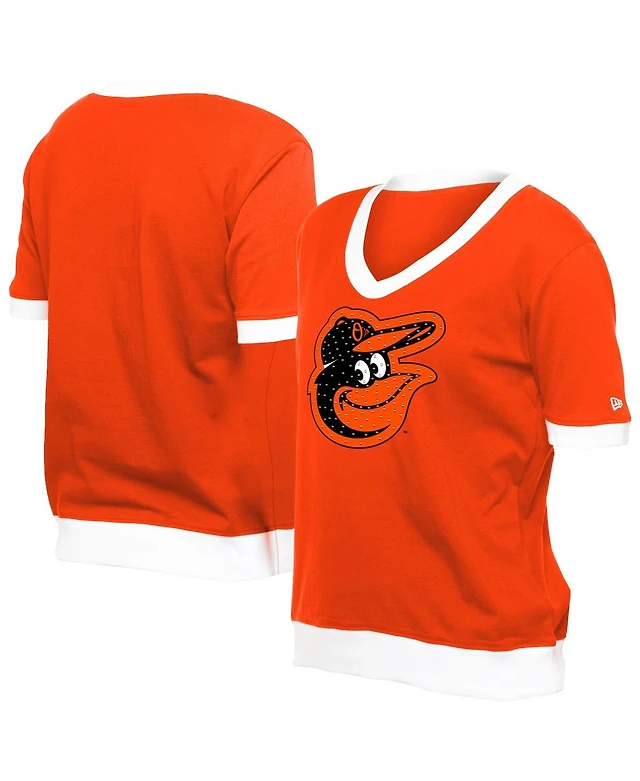 New Era Women's Orange Baltimore Orioles Game Day Rhinestone V-Neck T-Shirt