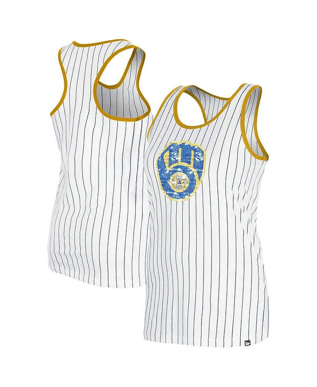 New Era Women's White Milwaukee Brewers Gameday Pinstripe Tank Top