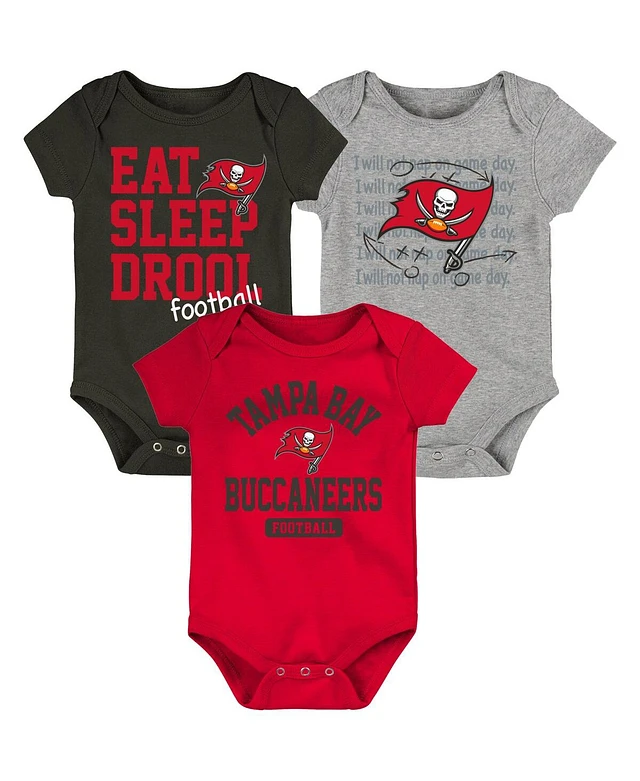 Newborn and Infant Boys and Girls Red, Pewter, Heathered Gray Tampa Bay Buccaneers Three-Piece Eat Sleep Drool Bodysuit Set