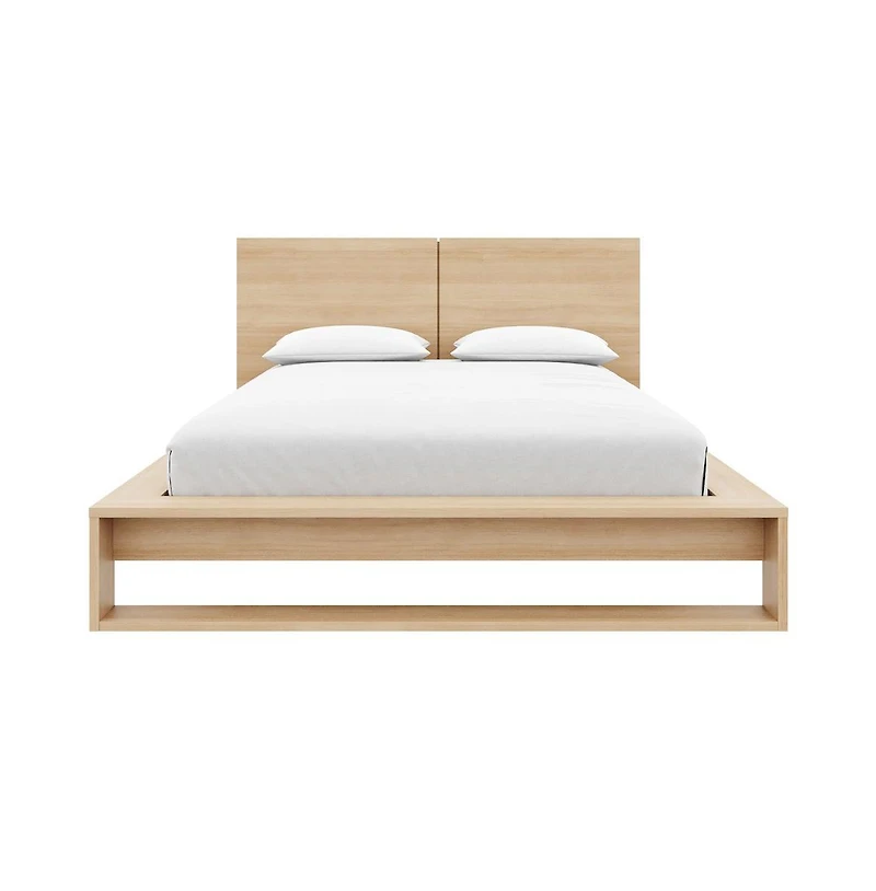 Experience the essence of modern style and functionality with our Canadian-crafted 2-piece bed set. Crafted from high-quality engineered wood with a textured melamine oak finish, this set showcases quality craftsmanship and a sleek, minimalist design. The platform bed and complementary headboard offer timeless elegance, combining ease of assembly with a stylish upgrade for your bedroom. For more details and features, please refer to the item's specifications.
