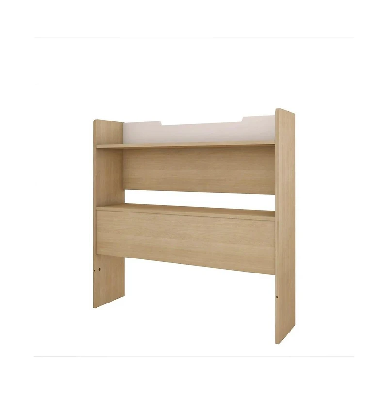 Nexera twin size storage headboard in White and Maple features 2 shelves for additional storage space without taking any extra square footage. This scandinavian storage headboard matches various twin size beds from Nexera to create a complete bed set.