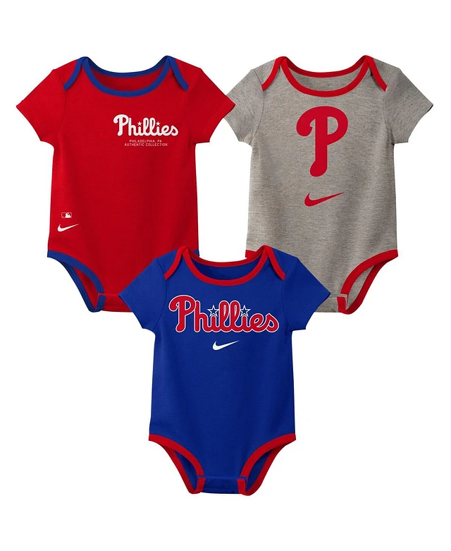 Newborn and Infant Boys and Girls Philadelphia Phillies Red, Royal, Heathered Gray Game Time Three-Piece Bodysuit Set